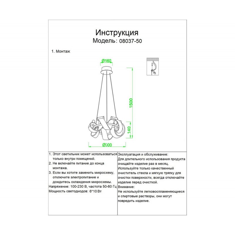 | Общая мощность, W | 100 |